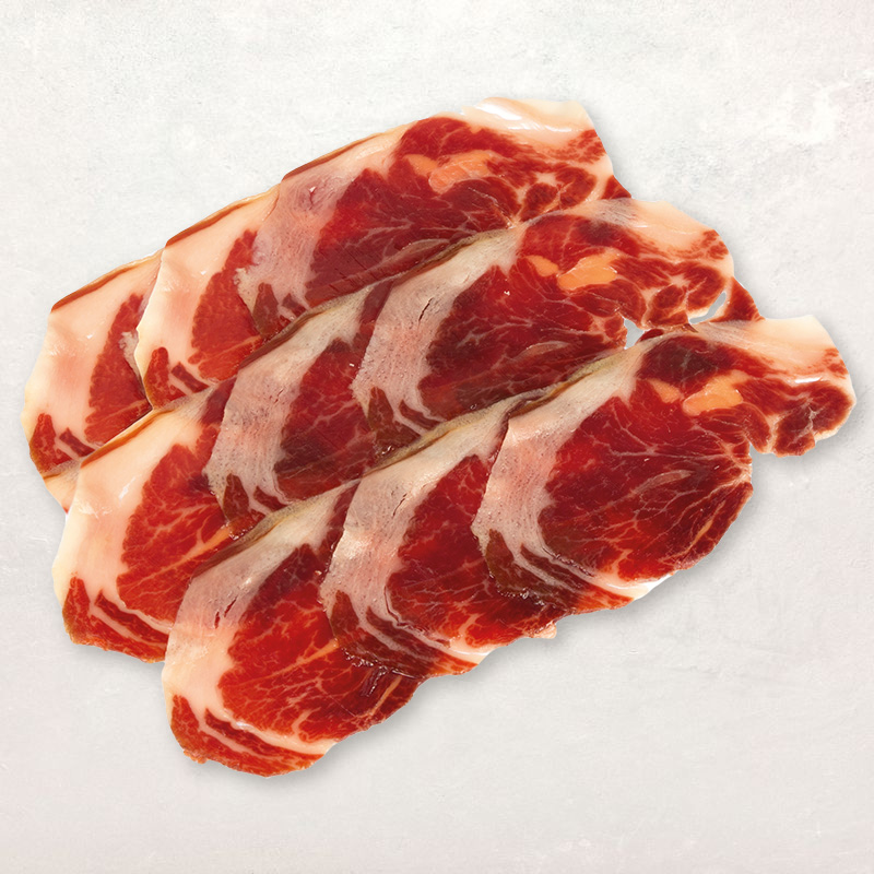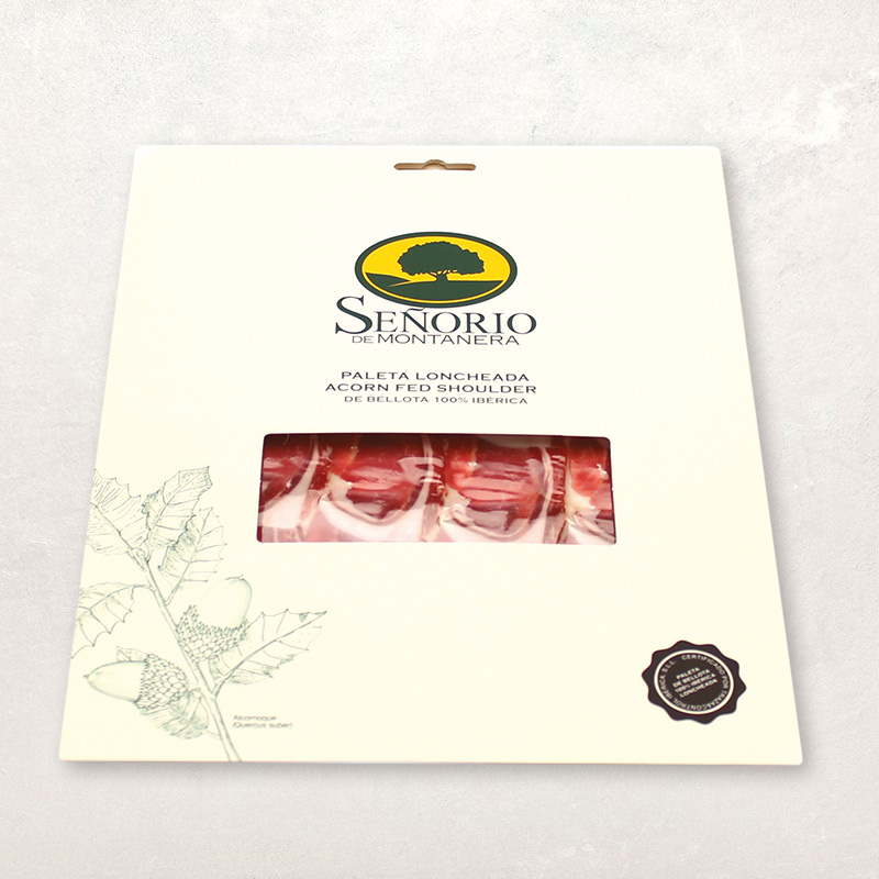 Cette paleta Bellota 100% Ibérico au savoureux parfum de noisette est une parfaite alternative au jambon ibérique. Moins onéreux que le jambon, ce morceau d'épaule au gras bien infiltré est tout aussi savoureux. À l'apéritif, la paleta ibérique mérite bien sa place sur les plus beaux plateaux de charcuteries.