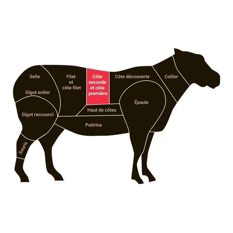 Ce carré 8 côtes est composé des côtelettes premières, secondes et découverte non séparées forment un carré, il constitue un rôti particulièrement savoureux.