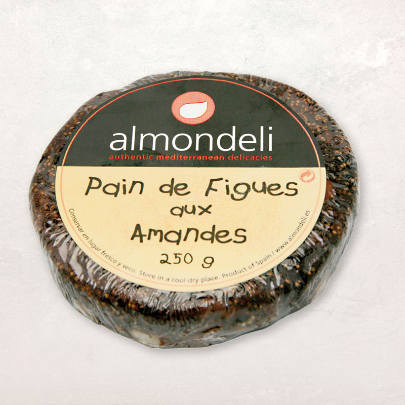 Réalisé uniquement avec 90% de figues séchées d'Estrémadure et 10% d'amandes Valencia il peut également être servi comme en-cas sur un buffet de desserts avec le café ou coupé en dés et proposé avec du foie gras ou dans une salade composée.