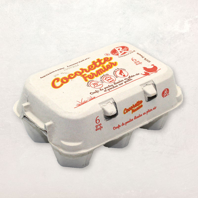 Les œufs Cocorette sont produits dans de petites fermes familiales selon les pratiques d'autrefois : authentiques, pondus sur de la paille, par des poules élevées en liberté et nourries sainement, puis ramassés à la main.