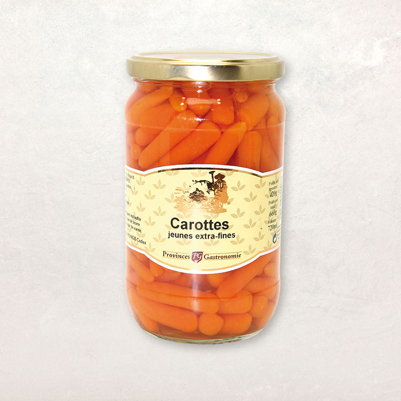Prêtes à l'emploi ces jeunes carottes sans conservateurs sont idéales pour accompagner vos viandes et poissons. Égouttez et faites réchauffer avec une noix de beurre ou dans un jus de viande.