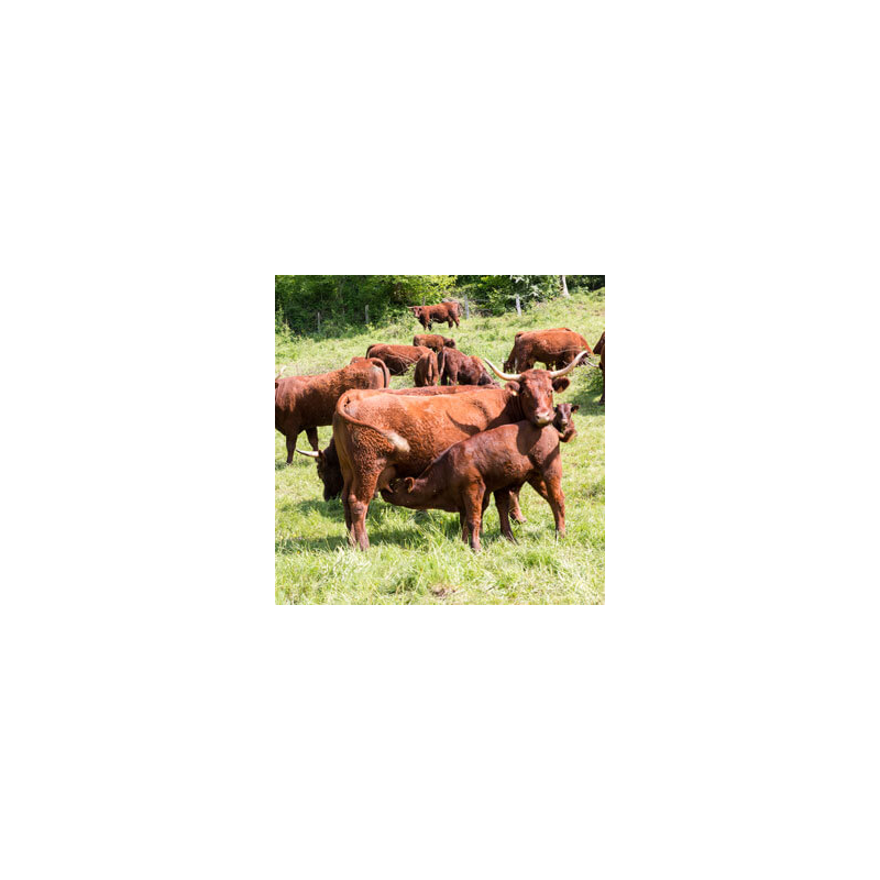 Le bœuf de race Salers est réputé pour sa saveur incomparable, sa couleur rouge vif, son persillé et sa jutosité...