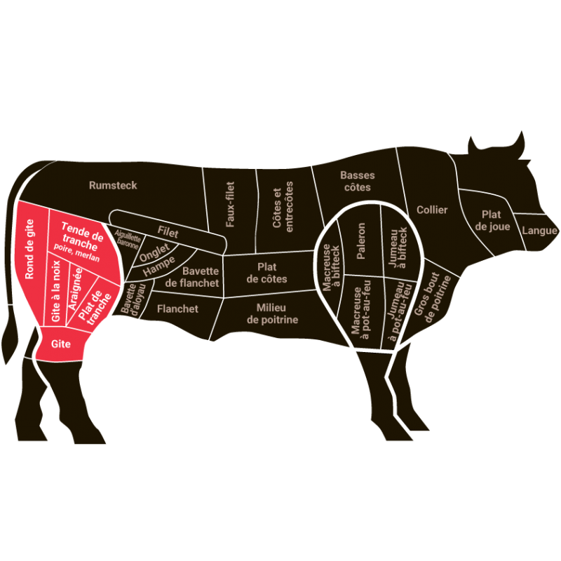 Découpé dans la cuisse de boeuf, ce steak de bœuf Salers dévoilera simplement ses arômes délicats et ses saveurs incomparables après une cuisson simplement grillée.