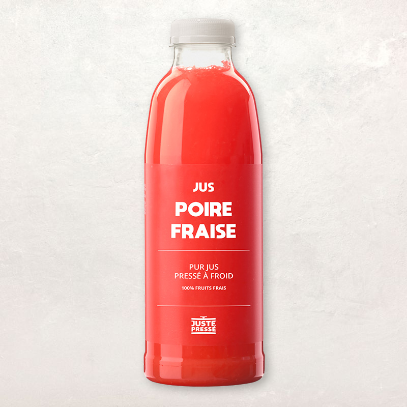 Ce jus presséde la marque Juste Pressé marie harmonieusement la douceur de la pomme et de la poire à la fraîcheur acidulée de la fraise et de la framboise.