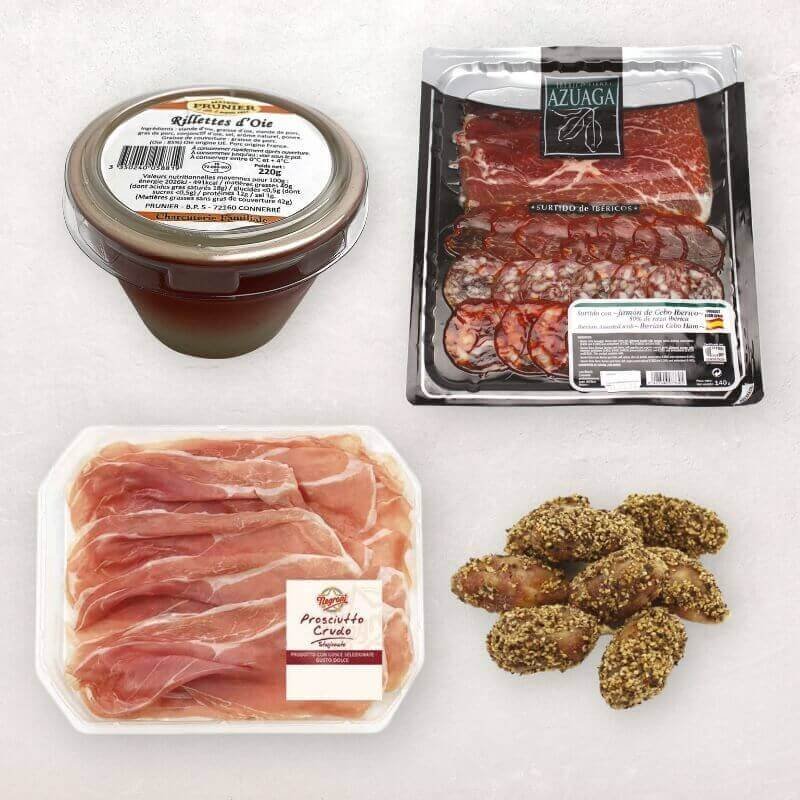 1 assortiment de chorizo, lomo, saucisson et jambon ibériques, 140g