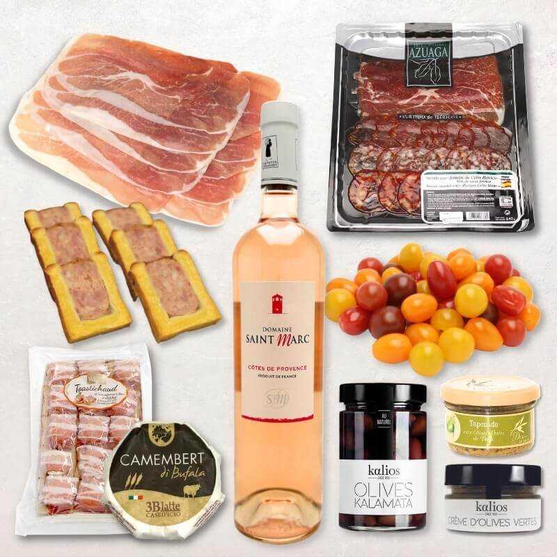 Fraîchement arrivée, notre Carré box Apéritif de Saison plaira sans aucun doute à tous vos invités ! Jambon italien, camembert au lait de bufflonne, aussi fin et délicat qu'un toastichaud chèvre au lard, assortiment de charcuteries ibériques, olives Kalamata pour la découverte... et bien sûr l'excellent Côtes de Provence Domaine Saint Marc rosé BIO. Aucune fausse note dans ce coffret apéro de saison.