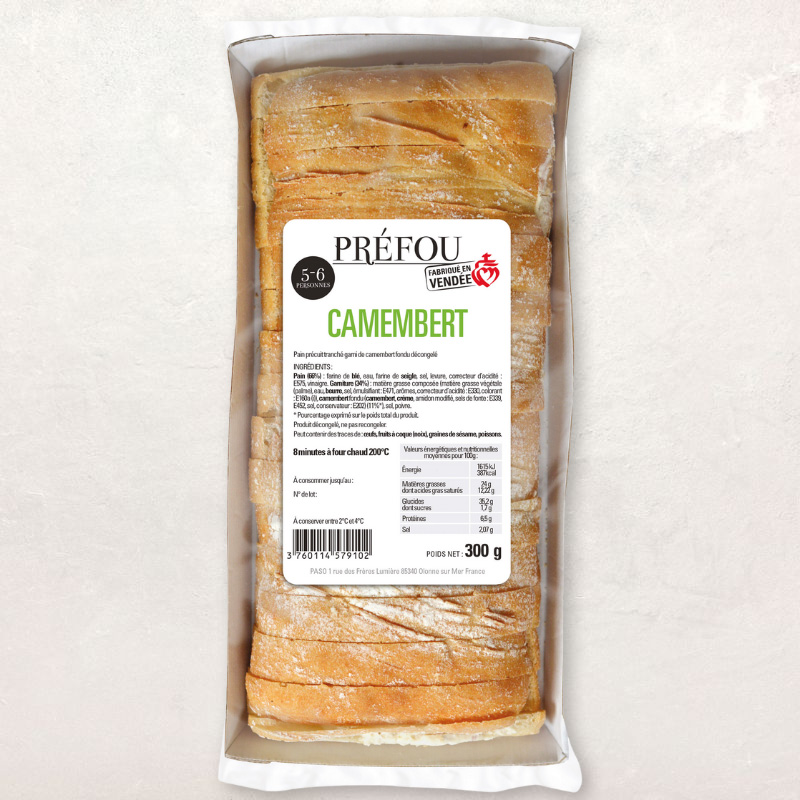 Déjà tranché, ce préfou au camembert, est bien pratique pour varier les plaisirs à l’heure de l’apéro ou accompagner une salade à l’heure du repas !