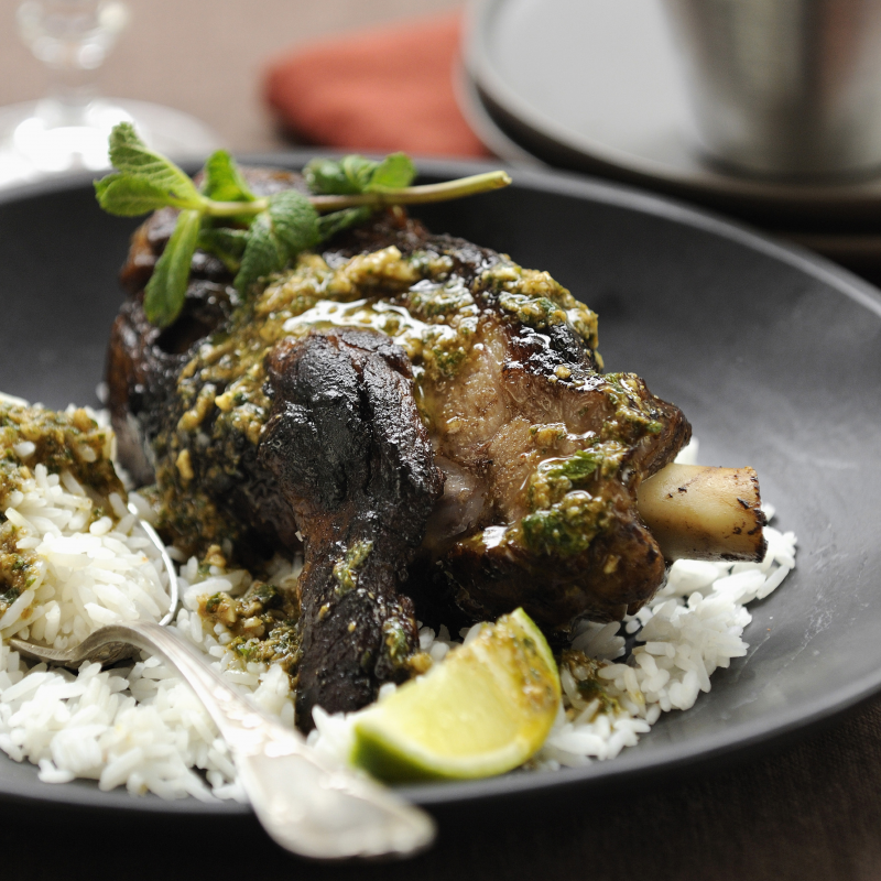 Recette d'épaule d’agneau rôtie au pistou de menthe