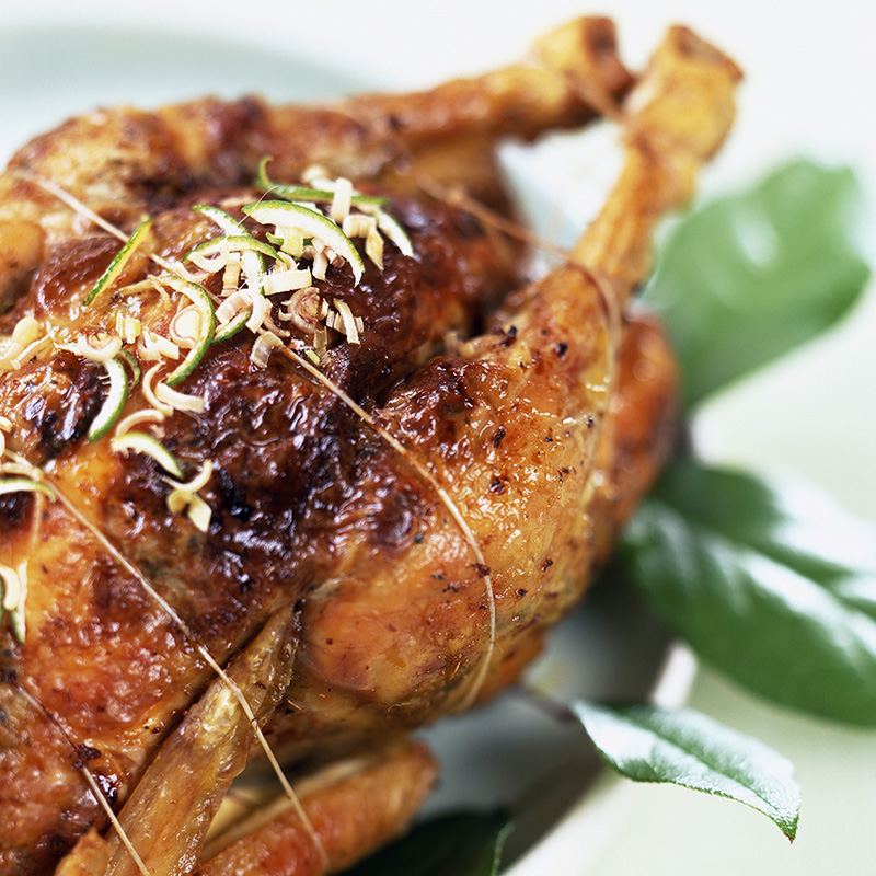 Sortez le poulet du réfrigérateur. Frottez-en la peau avec la pulpe d'un citron vert coupé en 4.