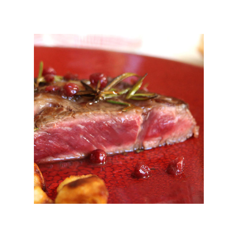 Cette recette combine pomme de terre sautées, entrecôte grillée au romarin, et une petite sauce aux airelles et miel de thym de Sitia en Grèce. Pour une recette au caractère plus épicé, vous pouvez opter pour notre miel au piment et au truffes.