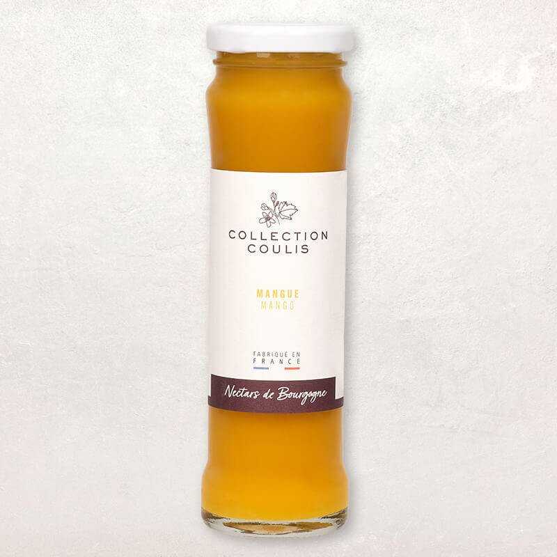 Ce coulis est produit à partir de mangues de l'Ile de la Réunion (68%) dont il est le fruit emblématique surnommé la pêche des tropiques .