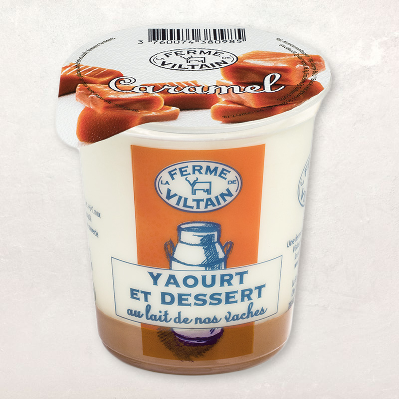 Yaourt fermier au lait entier français et dessert caramel 180g