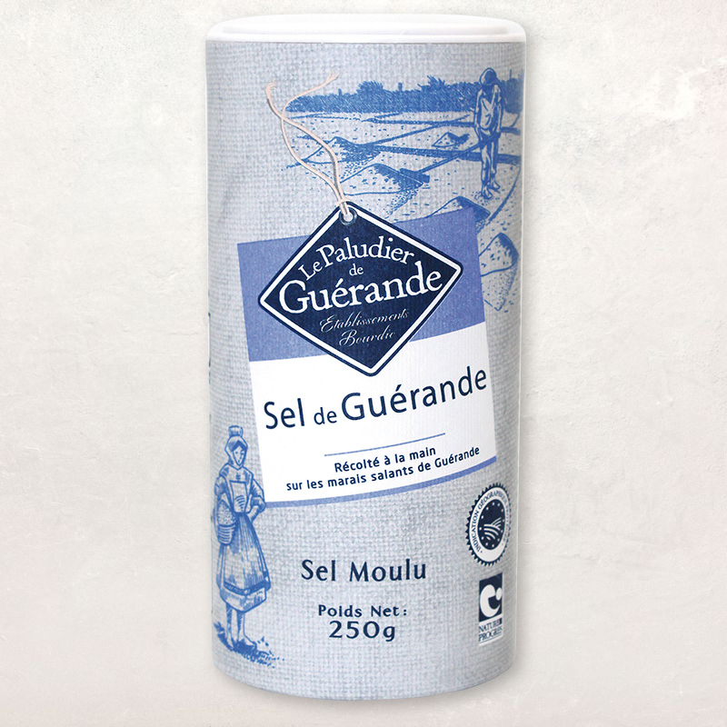Issu du gros sel récolté par les paludiers de Guérande ce sel moulu est égoutté au soleil séché et moulu. Il est naturellement gris et sans additif conformément au cahier des charges IGP.