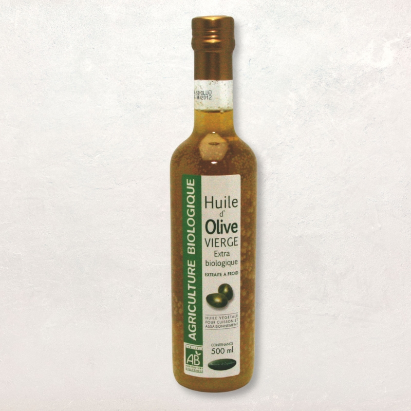 Issue d’olives cultivées en agriculture biologique, elle offre un fruité équilibré, mêlant douces notes herbacées et touches légèrement poivrées en fin de bouche.