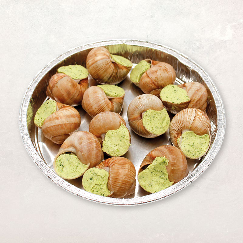 Ramassés à l'état sauvage cuisinés et préparés avec un beurre à l'ail selon la recette d'Éric Robert, MOF cuisine, ces 12 escargots de Bourgogne d'une belle grosseur ne demandent que 10 minutes de cuisson pour être servis et appréciés dans leur assiette.