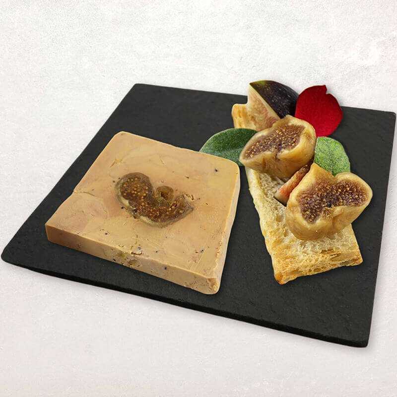 Ce foie gras de canard entier est garni de savoureuses figues moelleuses : une combinaison parfaite pour votre apéritif ou entrée festif. Cuit à 57°C à cœur, il conserve une texture fondante. Préparé dans un contenant rectangulaire de 270g conçu pour la restauration et facile à démouler, il vous assure une présentation parfaite.