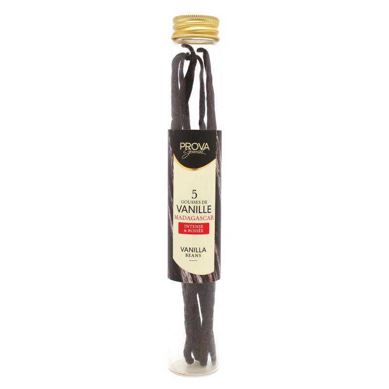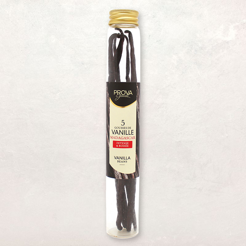 Gousses de vanille Bourbon de Madagascar tubo verre x5 20g