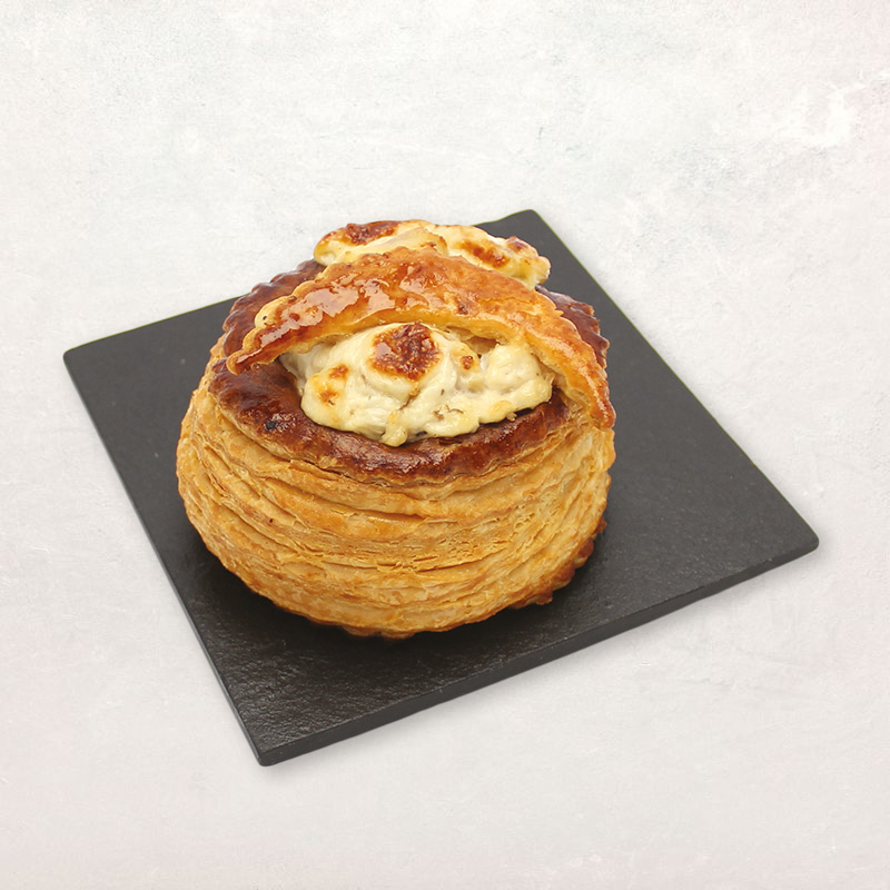 Elle est fabriquée de manière traditionnelle dans une réduction de vin blanc et de crème à laquelle viennent s’ajouter de la viande de volaille.
