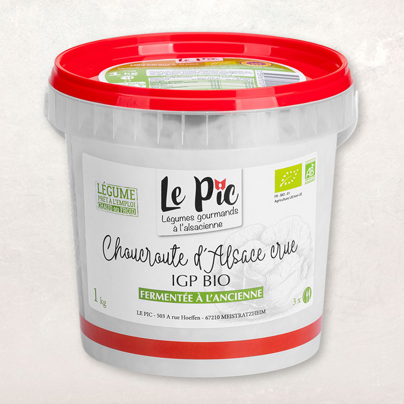 La choucroute d'Alsace IGP BIO crue a de multiples utilisations : pour des salades, la réalisation de choucroutes garnies mais aussi pour accompagner des viandes ou des poissons.