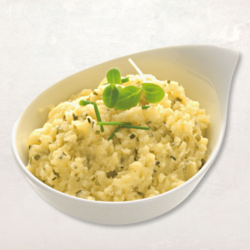 Préparée avec des pommes de terre soigneusement sélectionnées et généreusement travaillées au beurre, elle offre une texture moelleuse et un goût délicatement parfumé, relevé d’une touche de sel et de poivre.
