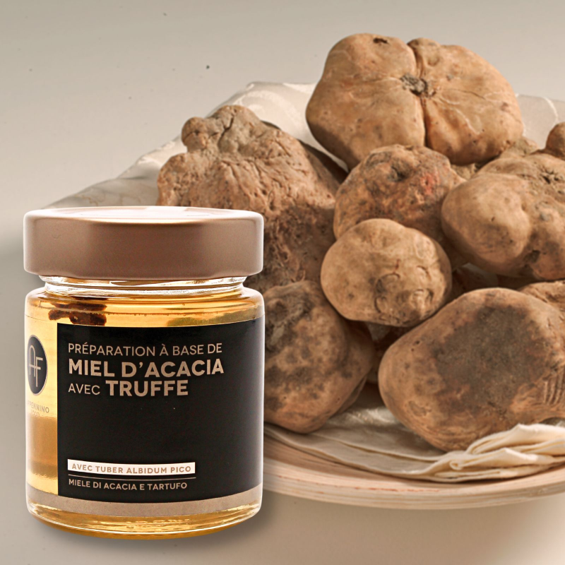 Cette préparation à base de miel d’acacia aromatisé à la truffe offre une expérience gustative exceptionnelle qui saura séduire les amateurs de saveurs raffinées.
