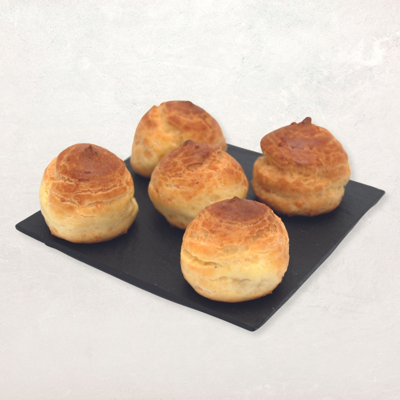 Ces gougères au fromage sont préparées avec passion et expertise. Elles sont le parfait mariage entre la légèreté d'une pâte à choux aérée et la richesse d'un mélange soigneusement sélectionné de fromages, incorporé directement dans la pâte. Contrairement aux produits fourrés, le fromage est intégré pour offrir un goût subtil et homogène à chaque bouchée.
