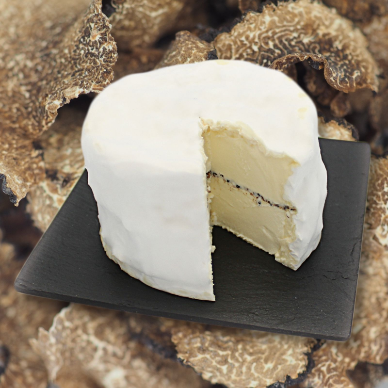 Fabriqué au lait de vache en Bourgogne ce fromage crémeux, un Brillat-Savarin, devient un magnifique écrin pour le goût unique et délicat de la truffe d'été (Tuber Aestivum Vitt.).