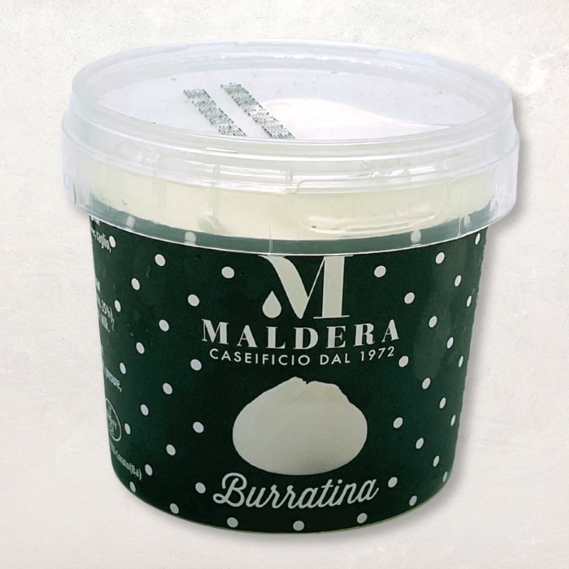 À l'ouverture, la burratina libère un parfum frais et lacté, évoquant les prairies italiennes où elle est fabriquée.