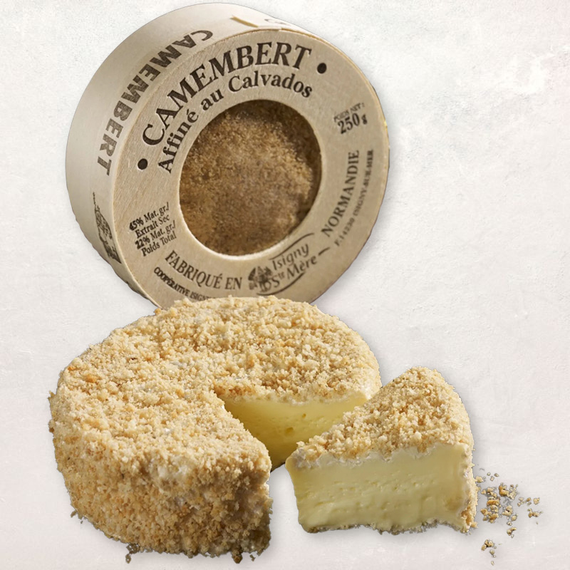 Ce camembert affiné au calvados allie le savoir-faire fromager normand à la richesse aromatique de l’eau-de-vie de pomme.