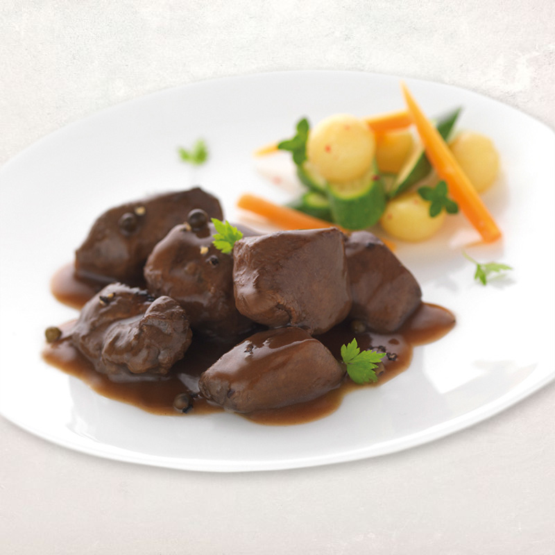 Ce sauté de chevreuil marie la finesse d’une viande de gibier tendre et parfumée à la richesse d’une sauce grand veneur, légèrement sucrée et relevée de notes poivrées.