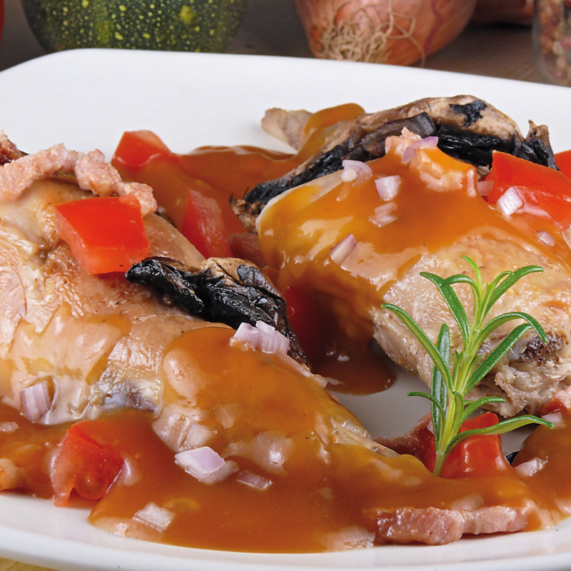 Préparé avec soin selon une recette traditionnelle, il incarne le goût du terroir avec une sauce riche en saveurs, des morceaux de lapin tendres et des champignons sauvages.