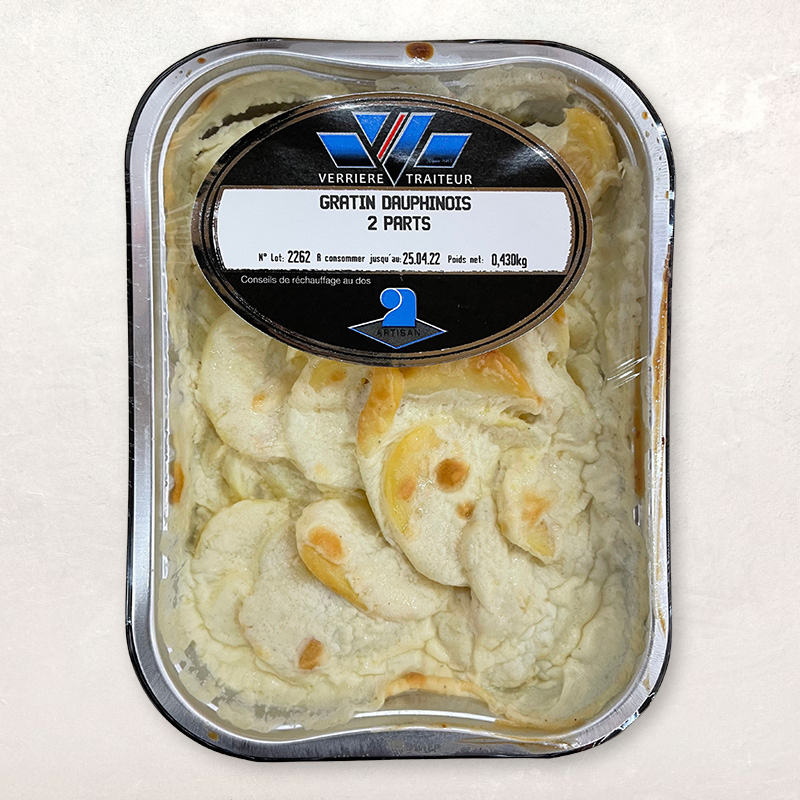 Fabriqué artisanalement, ce gratin dauphinois au goût authentique pour 2 est prêt à être réchauffé. Savoureux et fondant, il accompagnera parfaitement votre plat.