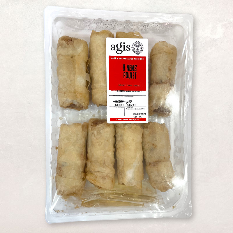 Chaque généreuse barquette contient 8 nems au poulet, savamment confectionnés pour vous offrir un équilibre parfait entre la tendreté du poulet et le croquant irrésistible de la feuille de riz.