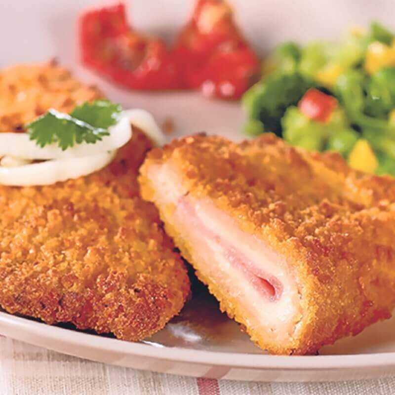 Ce cordon bleu de poulet est minutieusement préparé à partir de filets de poulet de première qualité, soigneusement enveloppés autour d'un délicieux cœur de fromage fondant, puis sublimés par une panure croustillante.