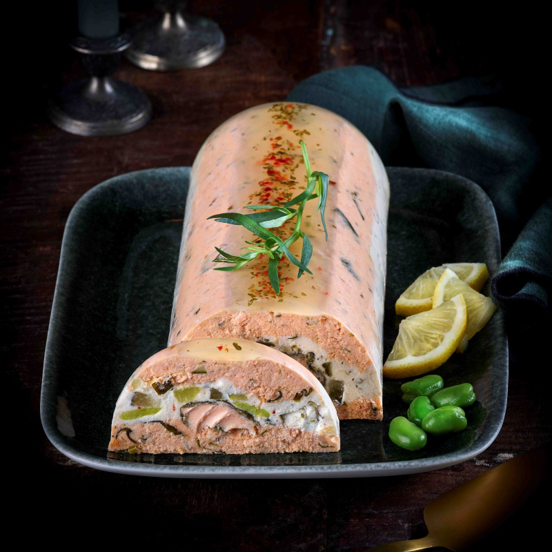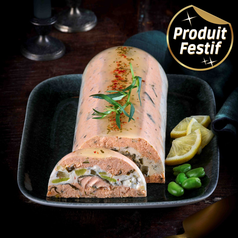 Bûche saumon, fèves croquantes, coeur de saumon persillé 1,2kg