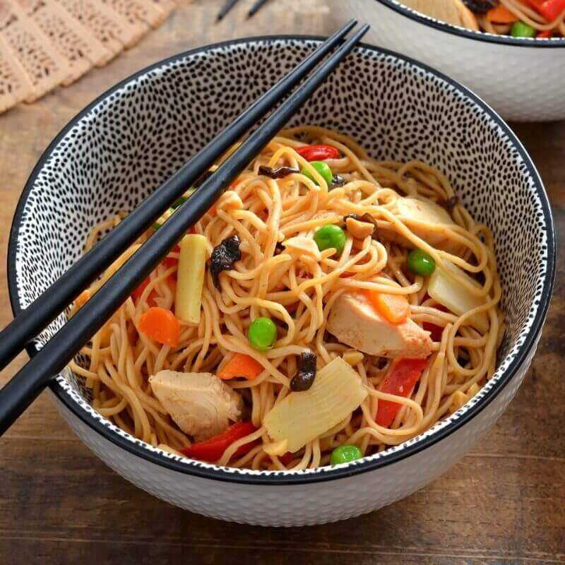 Ces nouilles chinoises au poulet français et aux légumes offrent un plat complet et équilibré, idéal pour un repas savoureux en toute simplicité.