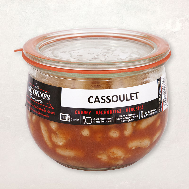 Sans colorant ni conservateur, ce cassoulet est préparé suivant une recette traditionnelle composée de viande de porc de Normandie et des légumes frais provenant principalement de Normandie (hors périodes de rupture saisonnière).