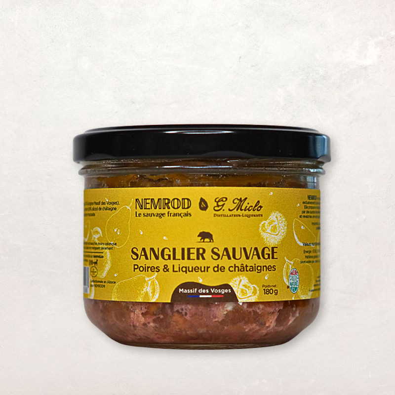 Terrine de sanglier sauvage français aux poires et liqueur de châtaignes 180g
