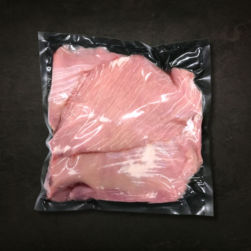 La grillade de porc est une pièce fine située le long de la palette, soit l’omoplate du cochon, et du carré de côte, soit le haut de sa colonne vertébrale. C’est un morceau rare car on n'en obtient qu'environ 1kg par porc. Ses fibres sont tout en longueur et sa chair est persillée, ce qui lui confère tendreté et saveur. Lors de la cuisson, cette grillade de porc développe une palette de saveurs alléchantes, avec des notes grillées et légèrement caramélisées qui rehaussent l'intensité de son goût. Son parfum irrésistible mettra l'eau à la bouche de vos convives. Polyvalente en cuisine, vous pouvez la griller au barbecue pour lui donner une touche fumée, la cuire à la poêle avec des épices pour une explosion de saveurs, ou la rôtir au four pour obtenir une tendreté incomparable. Elle se marie également à merveille avec différentes marinades, sauces et accompagnements, permettant ainsi de créer des plats uniques et gourmands. Quel que soit le mode de cuisson que vous choisissiez, elle promet une expérience gustative mémorable qui émerveillera les palais les plus exigeants.