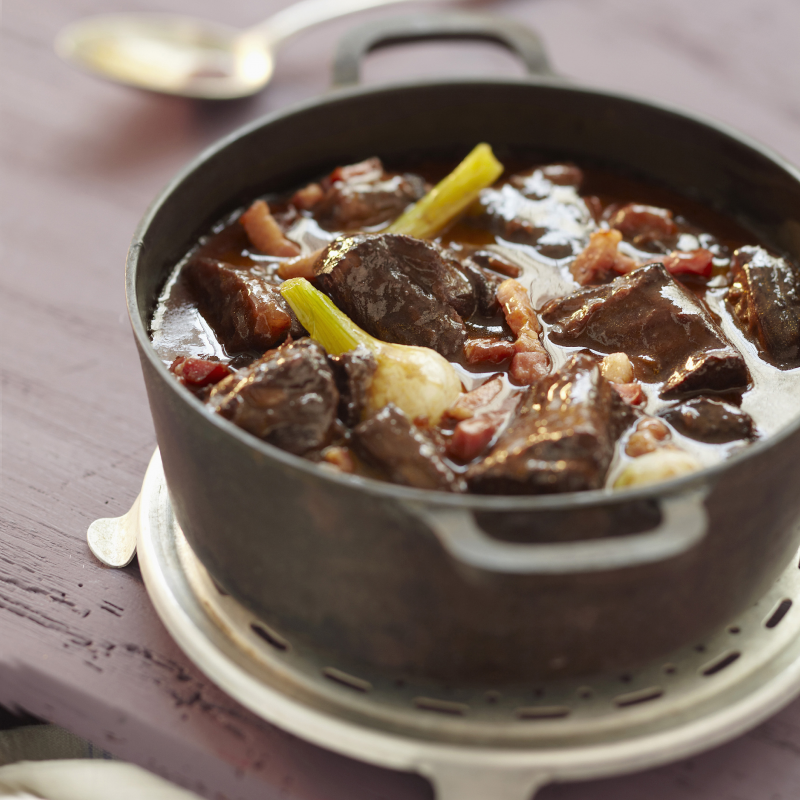 Après 1h30 de cuisson de la viande, vérifiez l'assaisonnement puis ajoutez dans la cocotte les champignons, les lardons et les oignons. Laissez cuire encore 45 minutes à couvert sur feu doux en mélangeant régulièrement. Dégustez bien chaud.