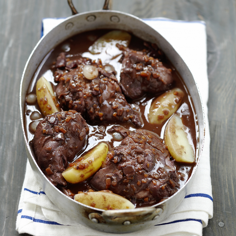 Notre délicieuse fricassée de lapin au vin blanc flambée au marc de Bourgogne
