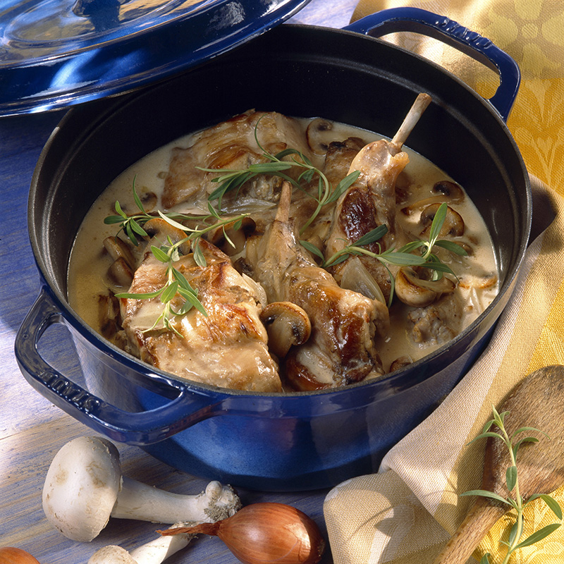 Voilà une recette simple à réaliser pour cuisiner le lapin avec une sauce gentiment parfumée. Elle s’accompagne volontiers de pommes de terre, de pâtes ou de riz.