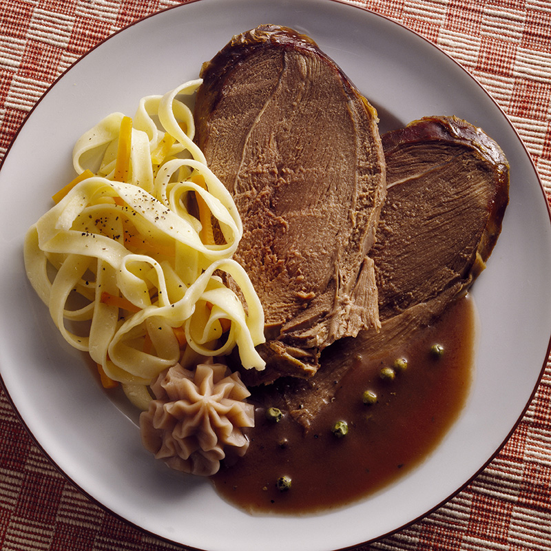 Servez les noisettes de rôti de chevreuil avec la sauce grand veneur, des pâtes fraîches et une purée de marrons ou de céleri.