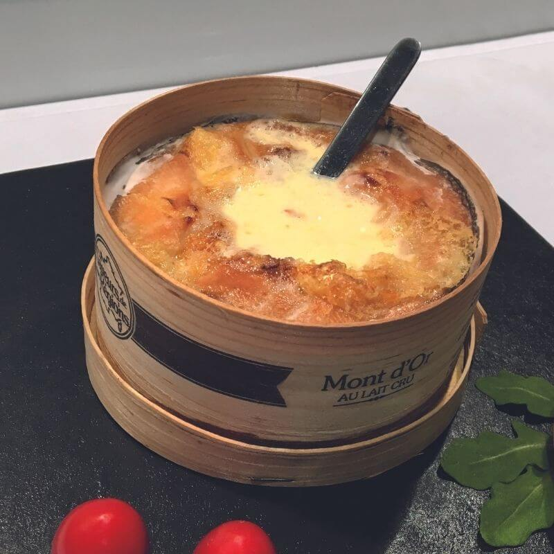Fromage au lait cru, le Mont d'Or se sert dans sa boîte en épicéa. Sa croûte est souvent plissée comme ses montagnes natales. Onctueuse et fondante, on déguste la pâte du Mont d'Or chaude à la petite cuillère.