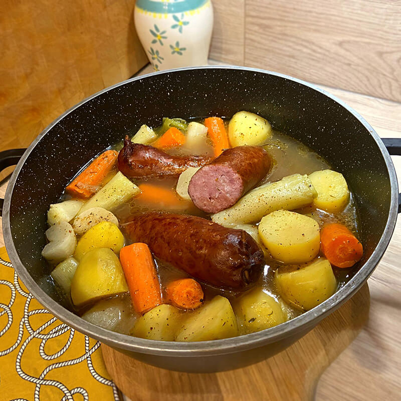 Préparation et cuisson du pot au feu saucisse de Morteau