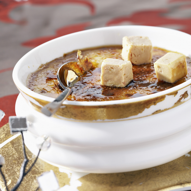Préparation et cuisson de la crème brûlée au foie gras