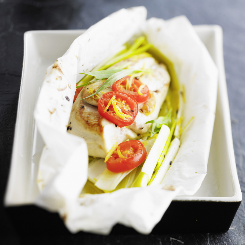 Recette de papillote de blanc de poulet à l'estragon et sa fondue de poireau