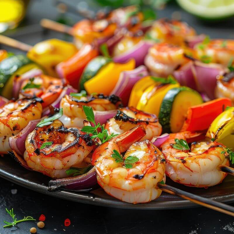 Brochettes de crevettes et légumes grillés - Marinade crevettes facile et savoureuse