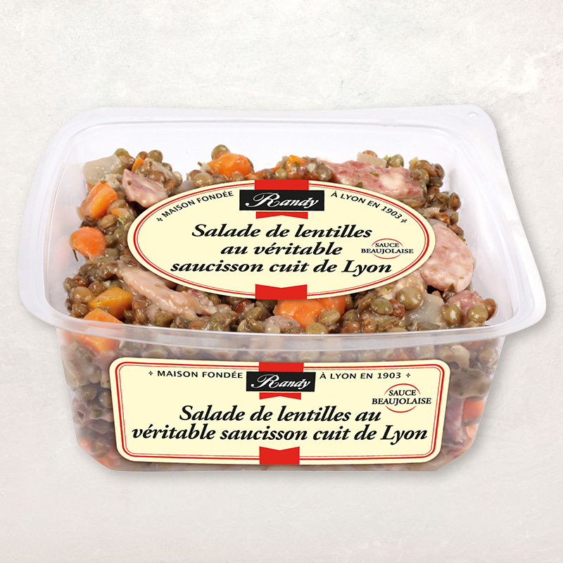 Salade de lentilles au véritable saucisson cuit de Lyon sauce beaujolaise 300g
