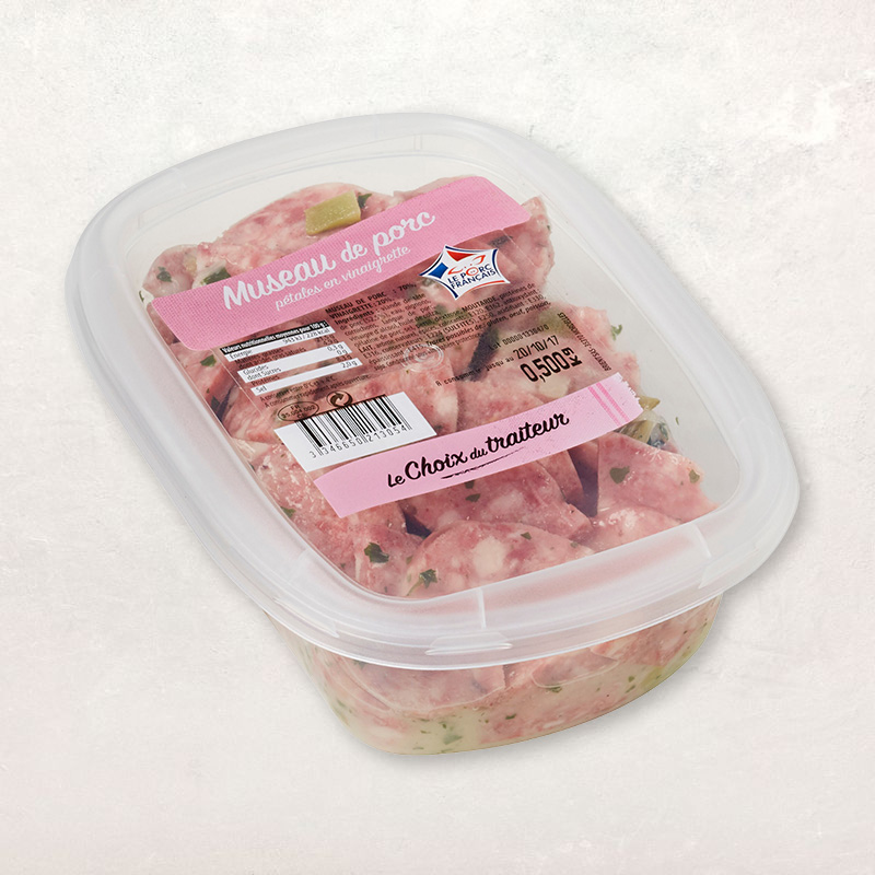 Chaque goutte de vinaigrette apporte une note de fraîcheur et d'équilibre, rehaussant les saveurs naturelles du museau de porc pour une expérience gustative inoubliable.